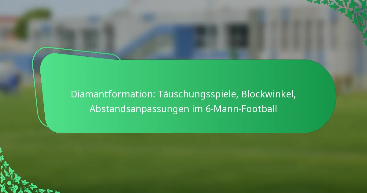 Die Diamantformation im 6-Mann-Fußball ist eine strategische Ausrichtung, die die offensive und defensive Effektivität durch ihre einzigartige Spieleranordnung maximiert. Diese Formation verbessert den Abstand, die Blockwinkel und die Täuschung, sodass Teams Spielzüge mit größerer Vielseitigkeit ausführen können. Durch die Nutzung von Täuschungsmanövern und optimalen Blocktechniken können Teams erhebliche Vorteile auf dem Spielfeld schaffen.