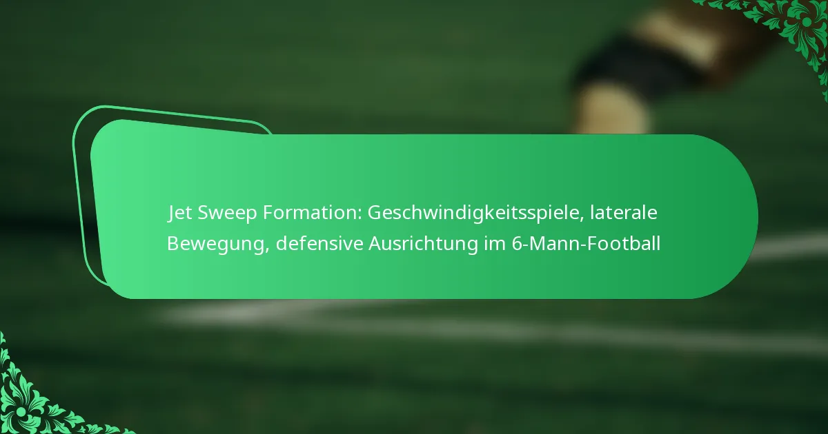 Die Jet-Sweep-Formation ist eine dynamische offensive Strategie im 6-Mann-Football, die Geschwindigkeit und laterale Bewegung betont. Sie nutzt effektiv defensive Ausrichtungen aus, zwingt zu Anpassungen und bringt gleichzeitig bestimmte Risiken mit sich, die Teams navigieren müssen.