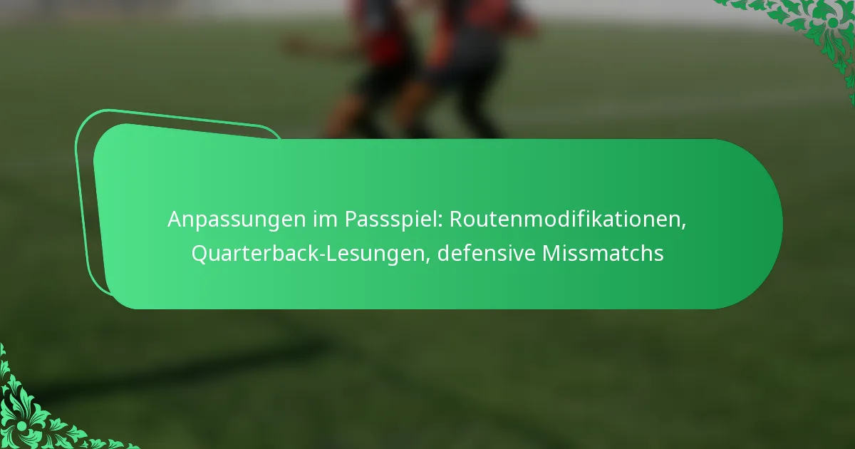 Anpassungen im Passspiel beinhalten strategische Änderungen an Routen, der Entscheidungsfindung des Quarterbacks und der Identifizierung defensiver Ungleichgewichte. Diese Komponenten arbeiten zusammen, um die offensive Effektivität zu steigern und Schwächen in der Verteidigung auszunutzen.